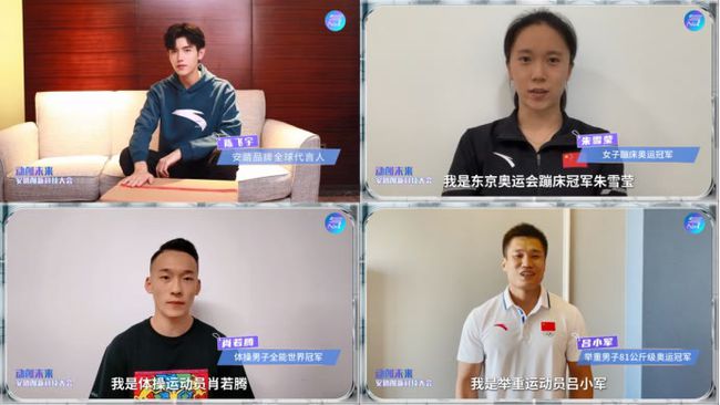 在本次“動創未來·安踏創新科技大會”中,除了有光束與多屏立體視覺所打造的科技運動風舞臺之外,眾多奧運明星的場外助力更是為整場直播賺足了看點。