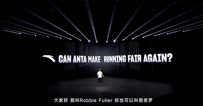 直播當晚,安踏C202 GT馬拉松競速跑鞋作為搭載“安踏氮科技”的主力亮相。安踏品牌鞋創意總監、C202 GT設計師Robbie Fuller為產品作介紹.